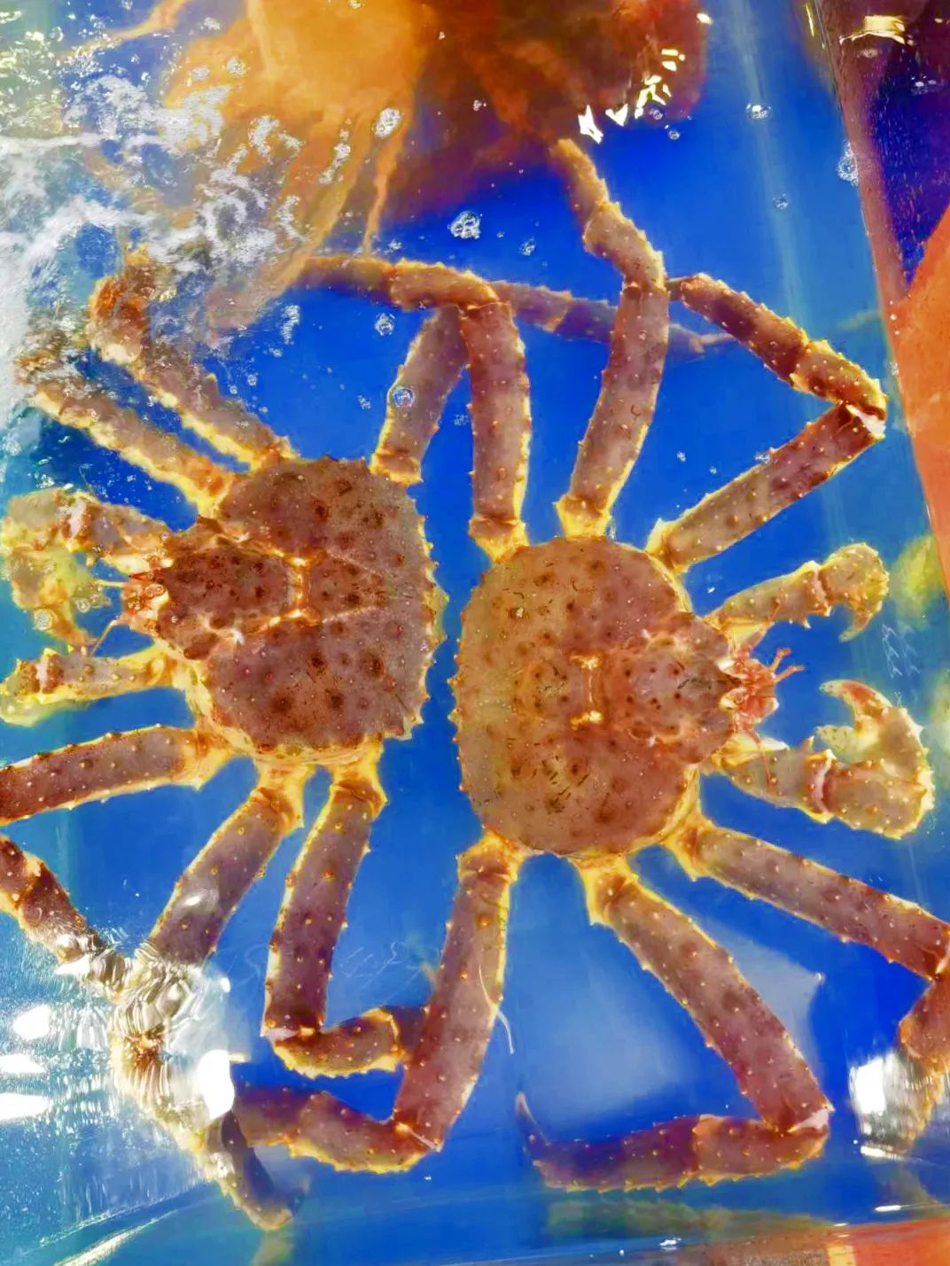 獐子島集團展區(qū)是展會中最具人氣的集聚地之一,重點展示了刺參系列、冷水活鮮系列、海洋預(yù)制菜系列以及大洋資源產(chǎn)品,幾只“橫行霸道”的帝王蟹、花椒蟹、雪蟹在水箱里緩緩挪動,引得眾人紛紛掏出手機拍攝。