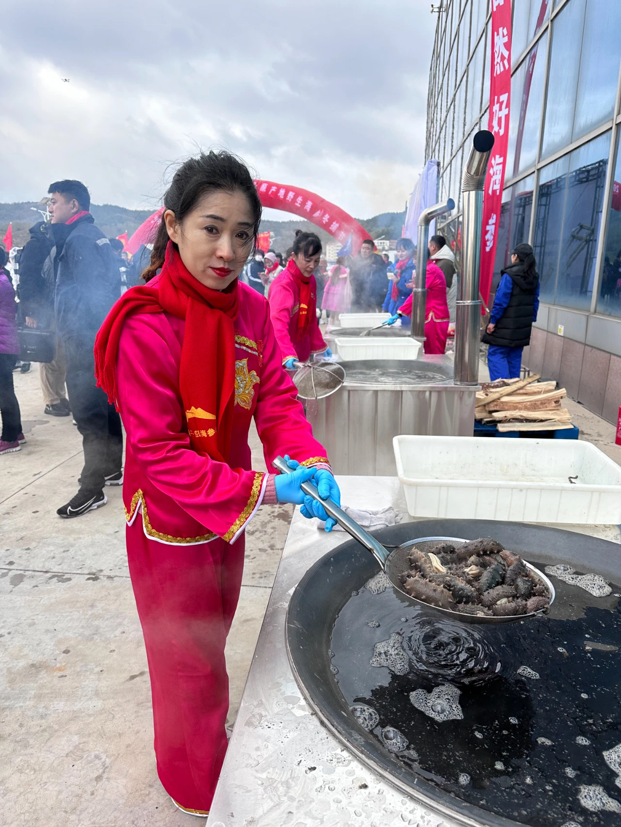 在冬捕節(jié)啟幕儀式上,漁民們載歌載舞唱響了冬捕節(jié)主題曲《采參謠》。武志強(qiáng)總裁助理為“獐子島原產(chǎn)地野生海參冬捕節(jié)·長??h海島特色(漁捕文化)活動基地”揭牌。這標(biāo)志著海參冬捕不再僅僅是一項漁業(yè)生產(chǎn),更成為海島百姓生活中一脈相承的重要文化節(jié)日。