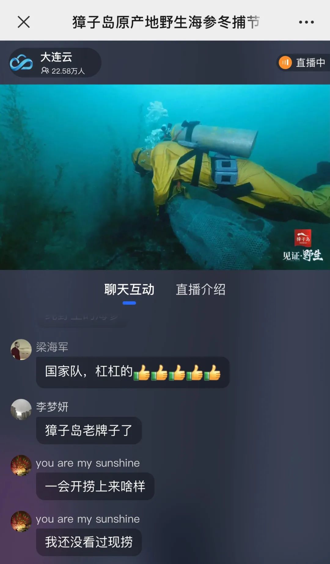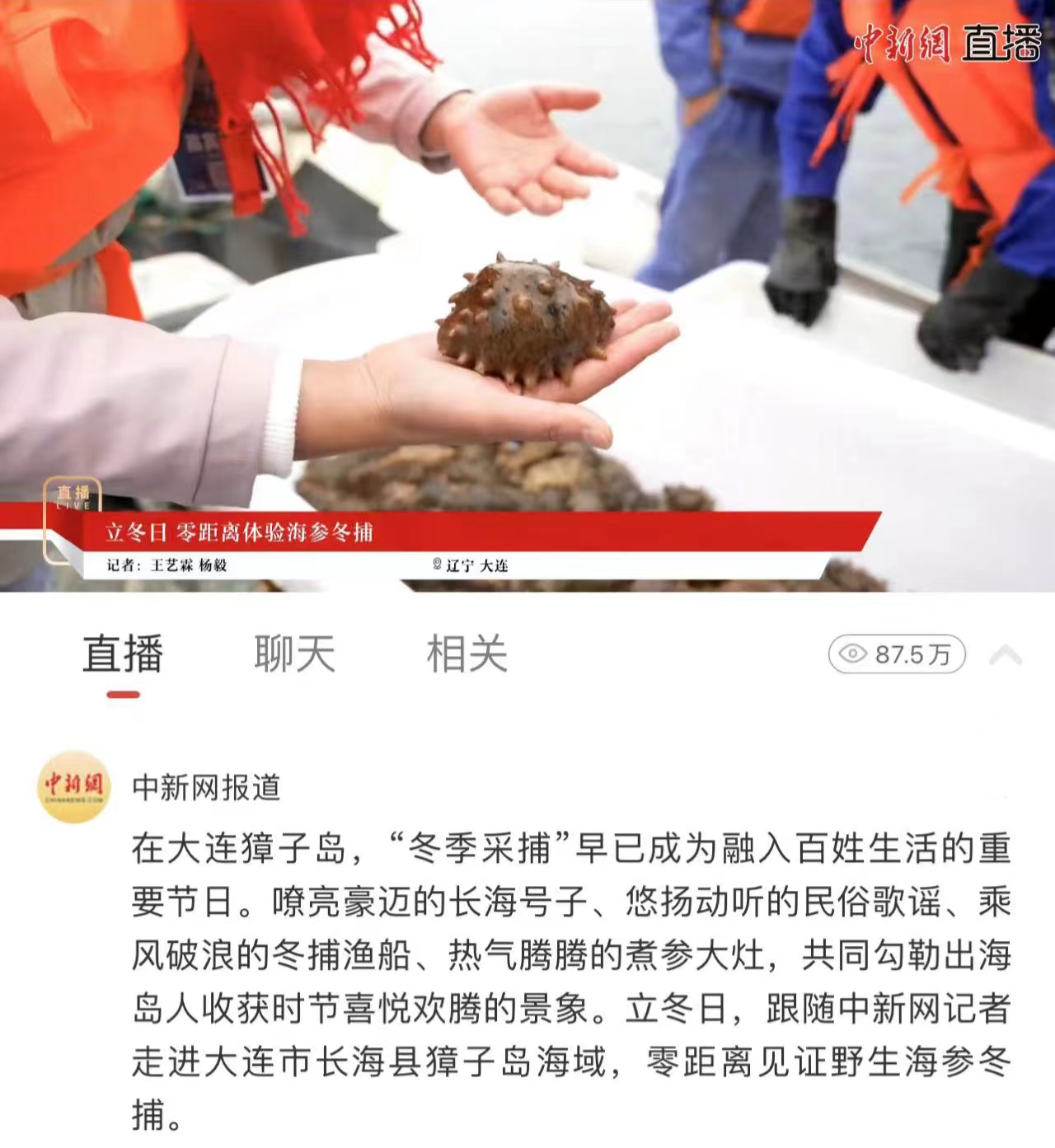 同時,今年的獐子島海參冬捕節(jié)還通過中國新聞網(wǎng)、遼寧衛(wèi)視、北斗融媒、大連云、新聞大連、發(fā)現(xiàn)大連、京東、天貓超市等官方平臺現(xiàn)場直播。