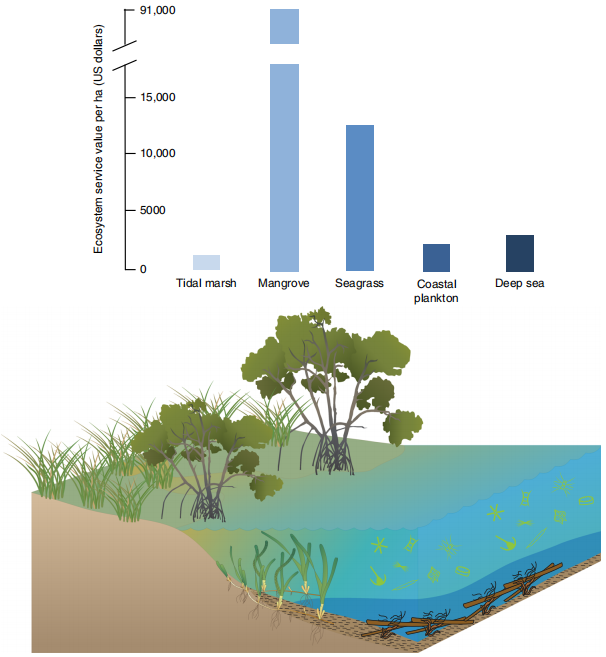 圖2 每公頃藍碳生態(tài)系統(tǒng)的經濟價值估算