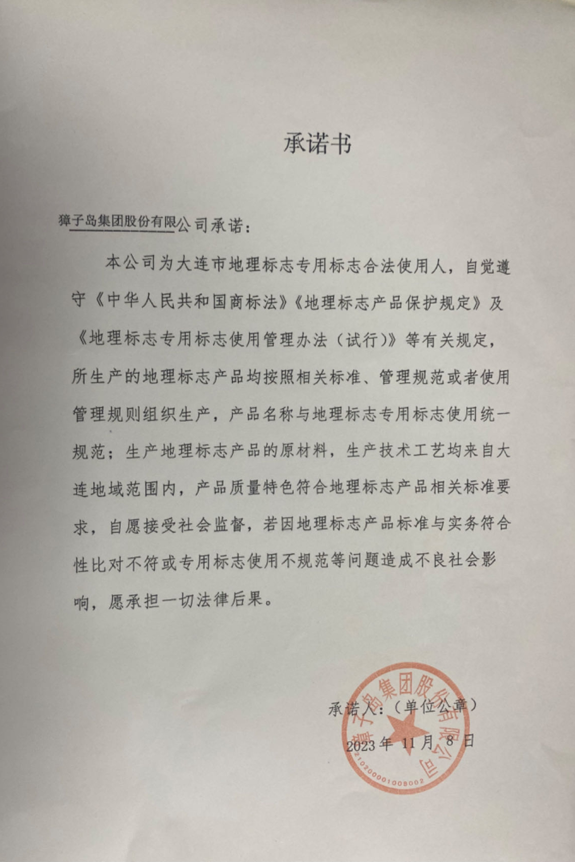 1、獐子島海參地理標志專用標志,自2022年3月20日起開始使用,共計印刷85000張,實際使用數(shù)量:82278張;