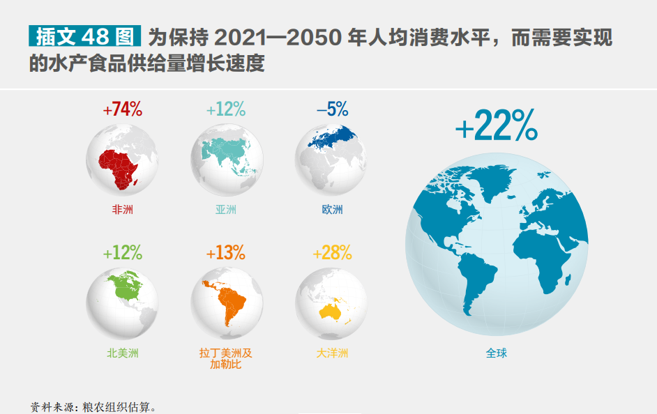 為保持 2021—2050 年人均消費水平,而需要實現(xiàn)的水產(chǎn)食品供給量增長速度。?糧農(nóng)組織