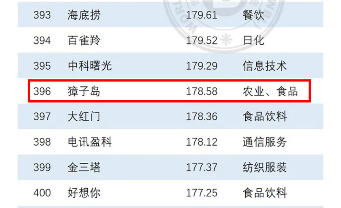 在本年度《中國500最具價值品牌》中,國家電網(wǎng)、中國工商銀行、海爾、中國石油、中國人壽位列前五。獐子島集團(tuán)是唯一入選的專注海洋食品的企業(yè),同時也是大連市唯一上榜企業(yè),遼寧省僅有的兩家上榜企業(yè)之一,另一上榜企業(yè)是華潤雪花啤酒(中國)有限公司。據(jù)世界品牌實(shí)驗(yàn)室分析,一個區(qū)域的競爭實(shí)力,主要取決于其比較優(yōu)勢,而品牌效益直接影響著地區(qū)比較優(yōu)勢的形成和發(fā)展。品牌是一個地區(qū)發(fā)展的重要標(biāo)志,品牌與區(qū)域經(jīng)濟(jì)的增長是相互聯(lián)動的。在衡量品牌的忠誠度時,世界品牌實(shí)驗(yàn)室參考了我信品牌(iTrust Rating)的評級數(shù)據(jù);在衡量品牌的領(lǐng)導(dǎo)力特別是ESG(環(huán)境、社會和治理)評分時,參考了超級財(cái)經(jīng)(SuperFinance)的ESG數(shù)據(jù)庫。同時還借用了低碳國際(Carboncare International)對品牌企業(yè)碳排放的計(jì)量,以推動品牌添加“碳排放評分”標(biāo)簽。