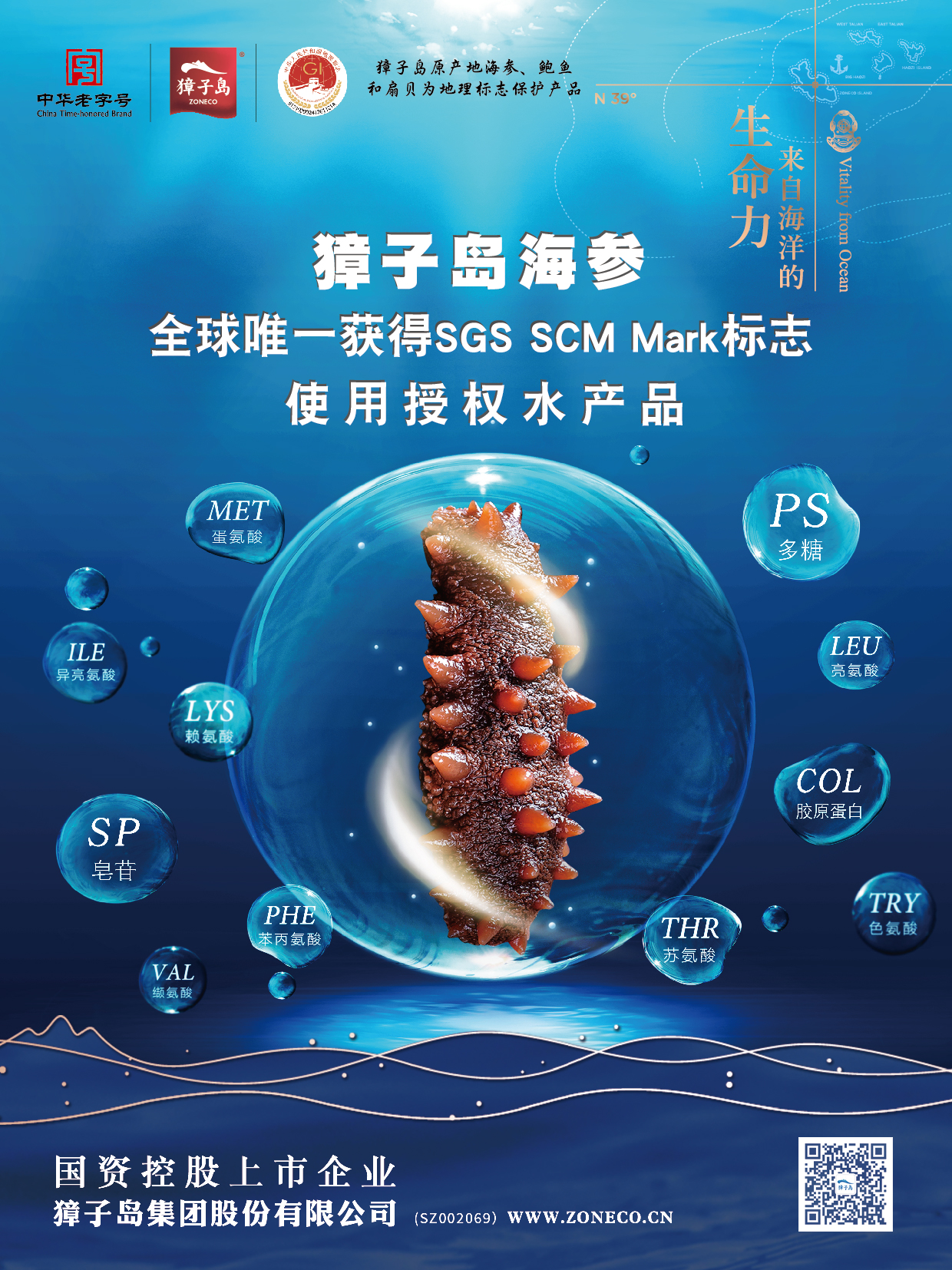 獐子島位于北緯39°、北黃海黃金海域,是國家級海洋牧場示范區(qū),憑借獨(dú)有的地理區(qū)位與水質(zhì)環(huán)境,實(shí)現(xiàn)了刺參、鮑魚、扇貝、海膽、海螺、生蠔、魚類、藻類等生物多樣性價值。獐子島海參、獐子島鮑魚、獐子島扇貝通過有機(jī)產(chǎn)品認(rèn)證,并獲得國家地理標(biāo)志保護(hù)產(chǎn)品。獐子島海參由國際檢驗(yàn)機(jī)構(gòu)SGS進(jìn)行供應(yīng)鏈全程監(jiān)控,通過了188項(xiàng)藥殘檢測,成為全國唯一、也是全球唯一獲得SGS