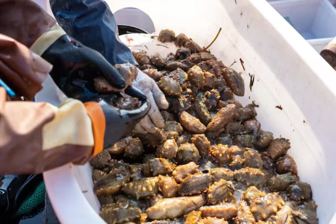 潛水員興奮的說,今年采捕的源刺參大部分個頭大、分量足,大的差不多能有四五兩,“今年這邊的海參,指定又是一個豐收年!”而小的不足2.5兩的海參,就要放歸大海,為的是保證野生源刺參的可持續(xù)發(fā)展。
