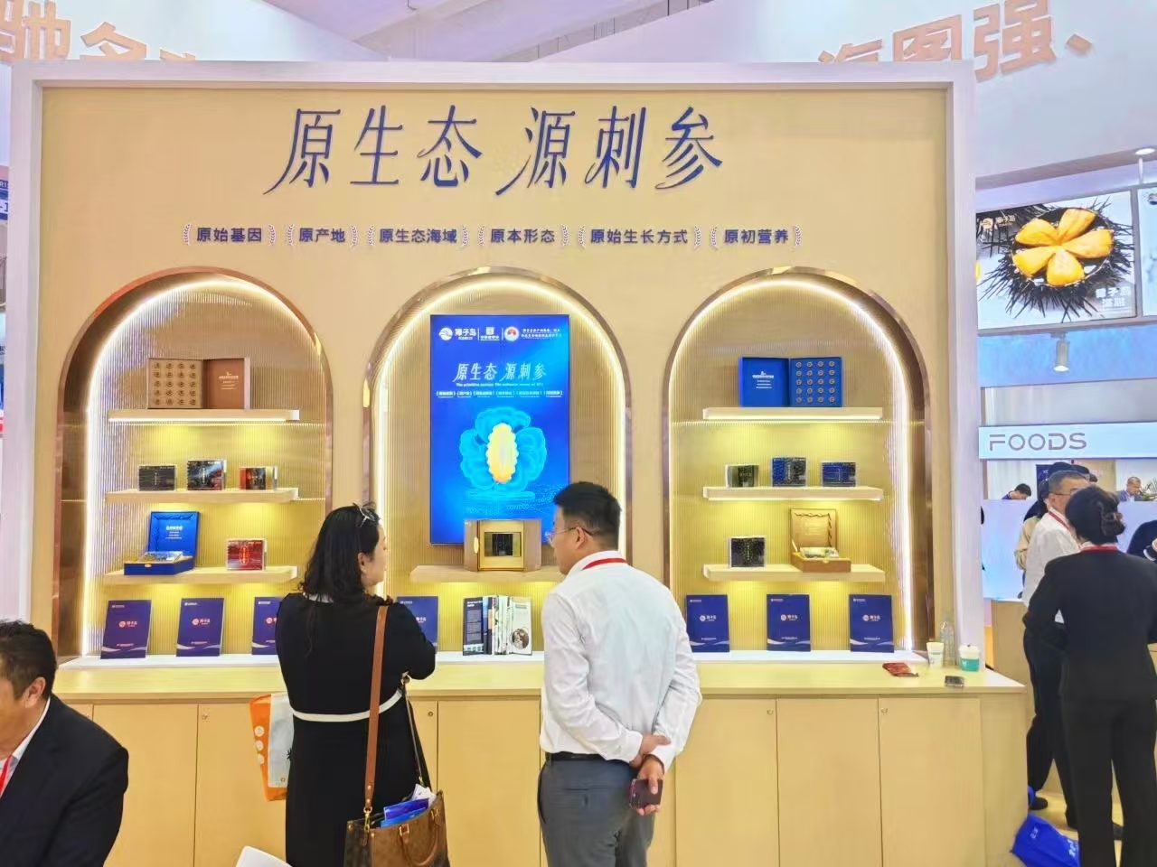 在獐子島集團特裝展位上,展示了來自北緯39°獐子島原產(chǎn)地的刺參、鮑魚、扇貝,以及大洋深海的三文魚、鱈魚、魷魚、鮐鲅、蝦等上百款養(yǎng)生食品、休閑食品、凍鮮食材和海鮮預制食品。特別是獐子島海參品類的全新升級尤為引人注目?!霸鷳B(tài) 源刺參”強化了其核心價值,并依托“原產(chǎn)地、原始基因、原生態(tài)海域、原始生長方式、原本形態(tài)、原初營養(yǎng)”的六原支撐體系,突顯了獐子島海參特有的自然稟賦和高端品質(zhì)?,F(xiàn)場還特邀名廚演繹精湛廚藝,讓客商們體驗到獐子島海洋美食的獨特魅力和源自海洋原生態(tài)的營養(yǎng)美味。