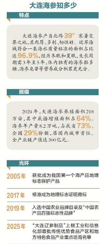 位于遼東半島的大連,是一座盛產(chǎn)海珍品的城市,海參、鮑魚、蝦夷扇貝等全國(guó)聞名,其中,海參最具代表性,現(xiàn)已形成海參育苗、養(yǎng)殖、加工、銷售全產(chǎn)業(yè)鏈,產(chǎn)值達(dá)300億元,帶動(dòng)就業(yè)超30萬(wàn)人。