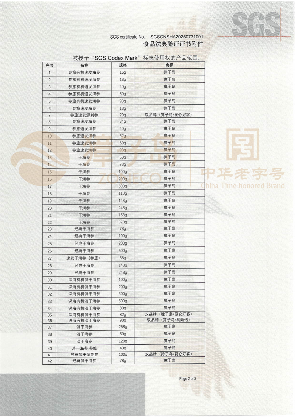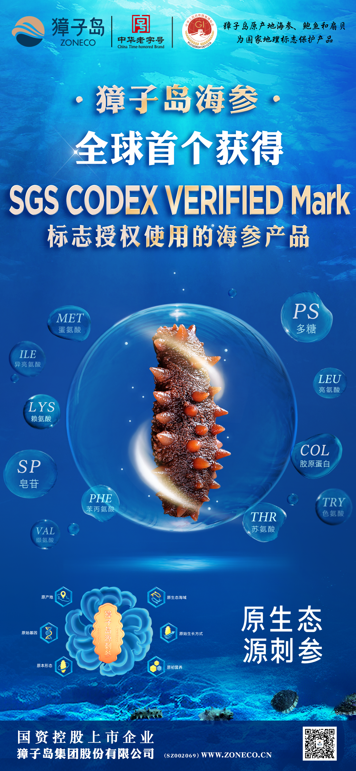 自2025年8月1日起,獐子島集團對海參產品進行了品質認證的全面升級,正式啟用全新的品質認證標志——SGS CODEX VERIFIED Mark(食品法典驗證)。這一舉措標志著獐子島集團在提升產品質量、保障消費者健康方面邁出了新的重要步伐,同時,集團也成為全球首個獲得SGS CODEX VERIFIED Mark標志授權使用的海參企業(yè)。