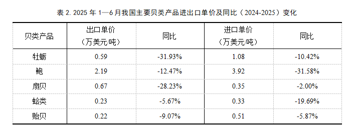 2025年上半年,我國(guó)貝類產(chǎn)品進(jìn)出口總量穩(wěn)中有增,但進(jìn)出口總額同步下降,總體呈現(xiàn)“量增額跌”的特征。