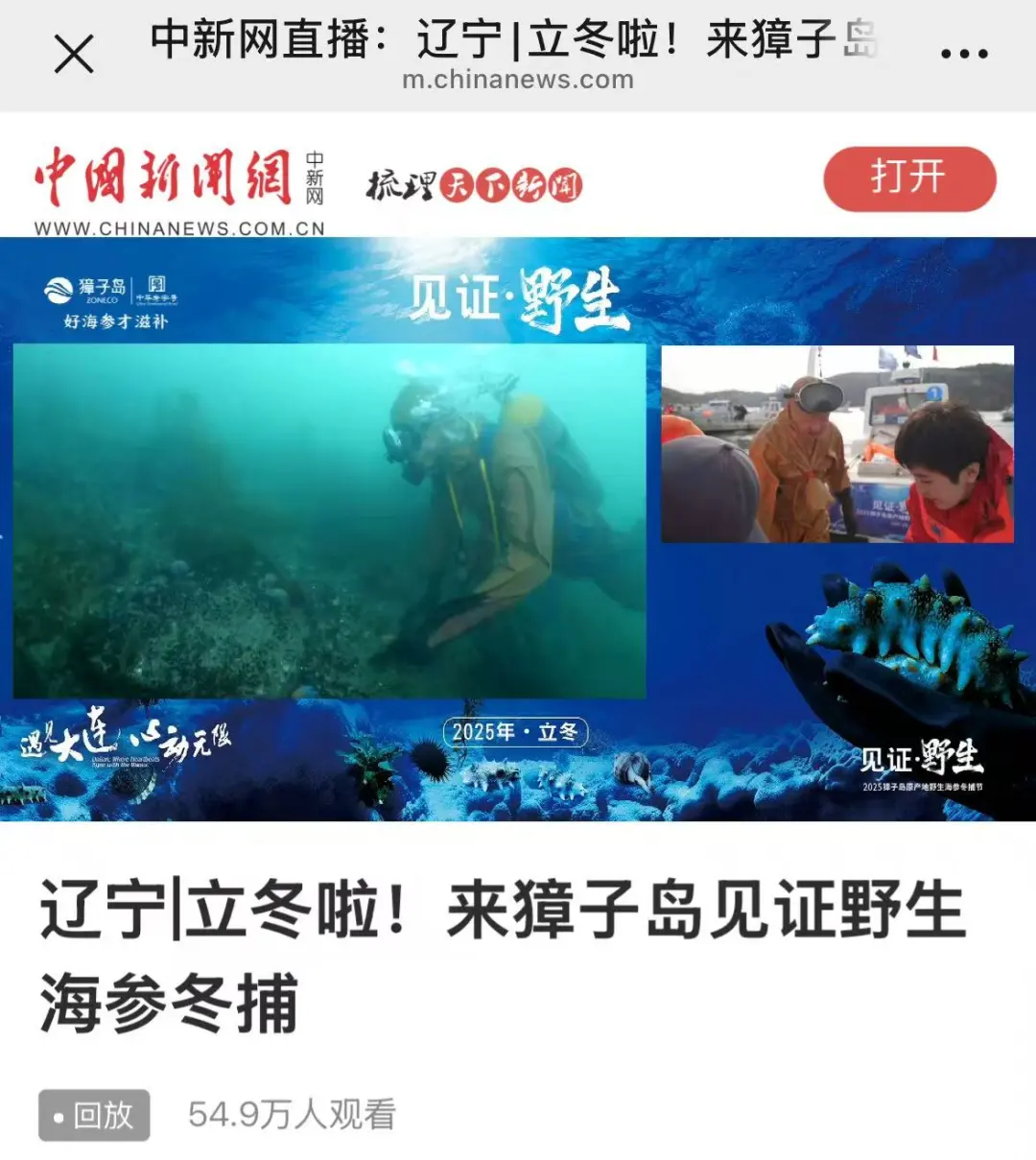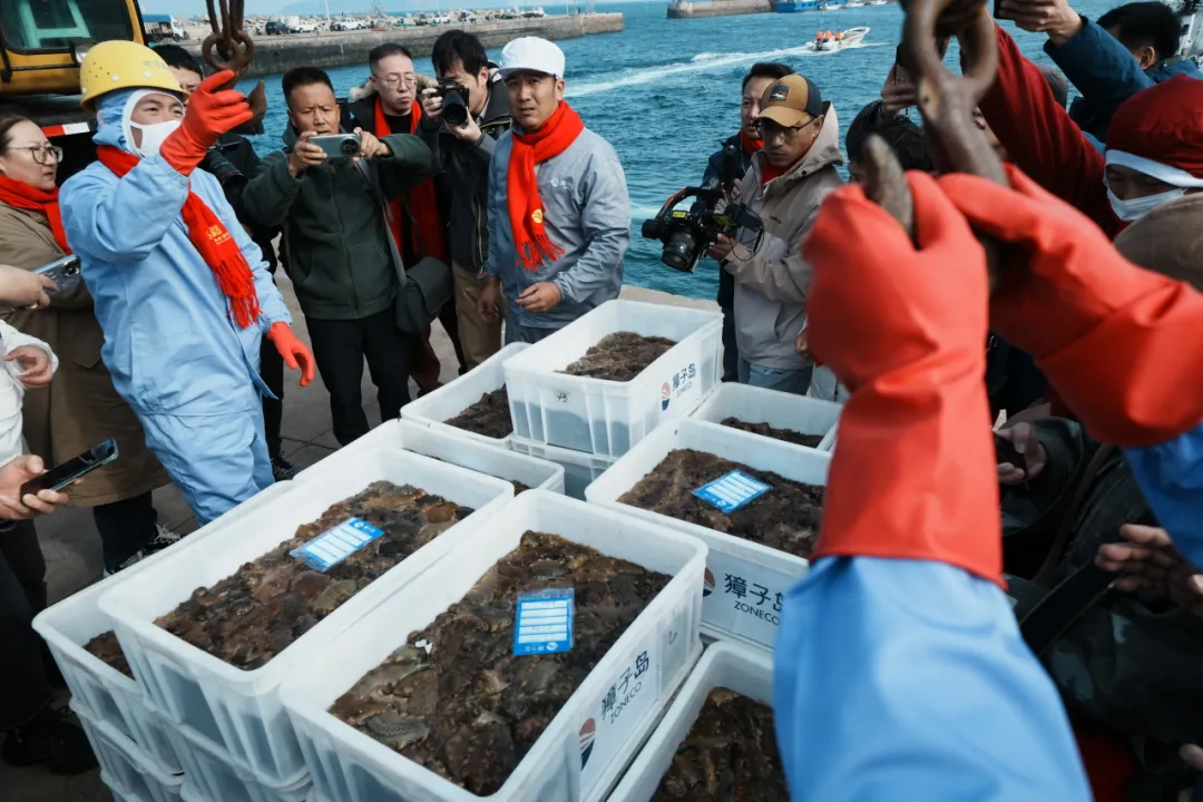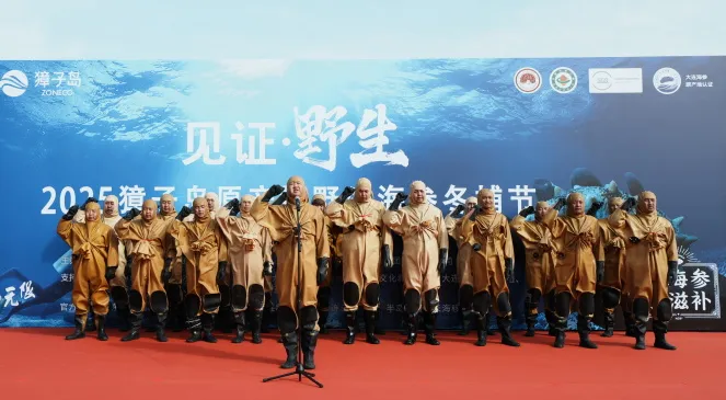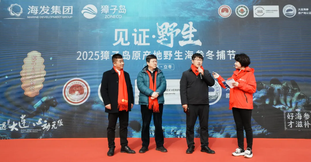 初冬時節(jié),碧海歡歌。11月7日,正值“立冬”節(jié)氣,在北緯39°黃金海域——遼寧大連長山群島最南端的獐子島鎮(zhèn),“見證·野生——2025獐子島原產(chǎn)地野生海參冬捕節(jié)”正式啟幕,現(xiàn)場鑼鼓喧天,海騰人歡,洋溢著豐收的喜悅。大連獐子島海洋發(fā)展集團(tuán)總經(jīng)理張昱,長海縣委常委、副縣長、獐子島鎮(zhèn)黨委書記張盛族,大連市文化和旅游局副局長劉磊,中綠華夏有機(jī)產(chǎn)品認(rèn)證中心主任欒治華,大連市現(xiàn)代農(nóng)業(yè)生產(chǎn)發(fā)展服務(wù)中心副主任趙宇,通標(biāo)標(biāo)準(zhǔn)技術(shù)服務(wù)有限公司大連分公司東北區(qū)農(nóng)產(chǎn)食品部經(jīng)理劉守峰,大連市海洋漁業(yè)協(xié)會會長李克詩,以及獐子島集團(tuán)總裁路珂等領(lǐng)導(dǎo)出席活動。來自全國各地的嘉賓、經(jīng)銷商伙伴、主流媒體代表及網(wǎng)紅主播等300余人共同見證這一海洋盛事的開啟。